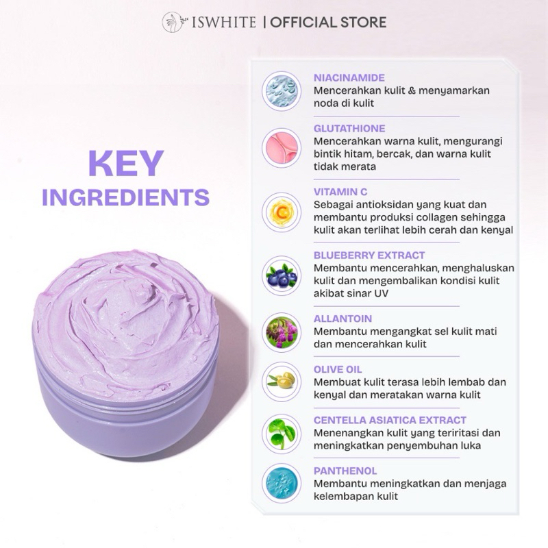 [READY] ISWHITE WHITENING BODY MASK 200 GR / ISWHITE WHITENING BODY SERUM / ISWHITE BODY SCRUB/ ISWHITE GLOW BODY SUNSCREEN NEW