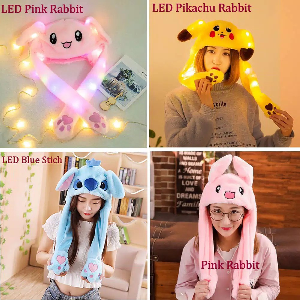 (READY PASURUAN) (COD) TOPI ANAK BUNNY HAT LED & BUNYI TIK TOK TELINGA BERGERAK TOPI MAGIC RABBIT STITCH ANAK GIFT KPOP