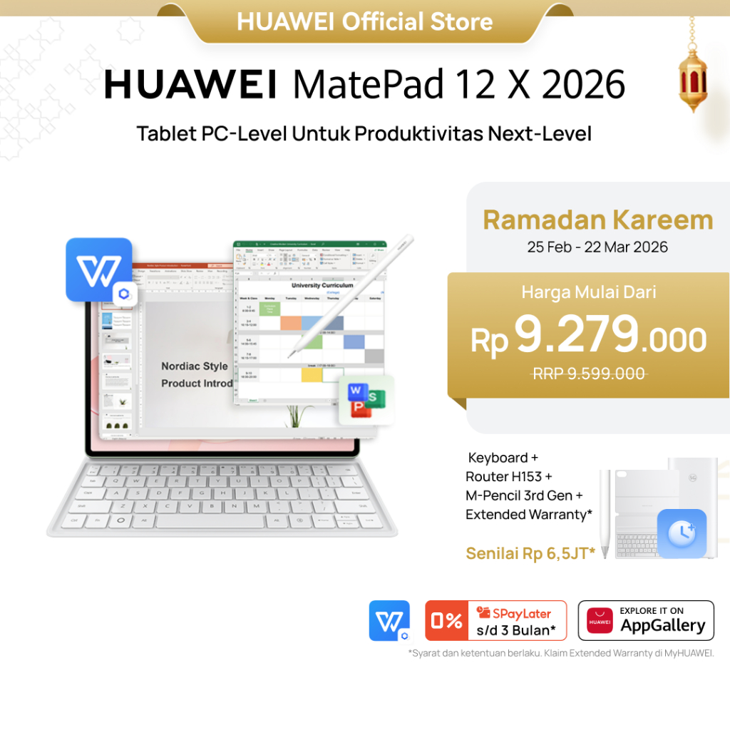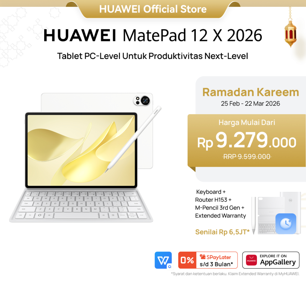 HUAWEI MatePad 12 X 2026 Tablet l PC-Level WPS 3.0 l Layar PaperMatte Ultra Jernih l Support M-Pencil Pro