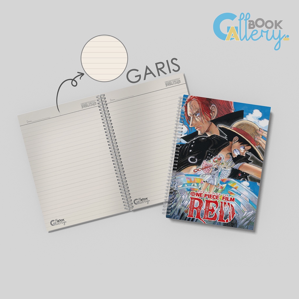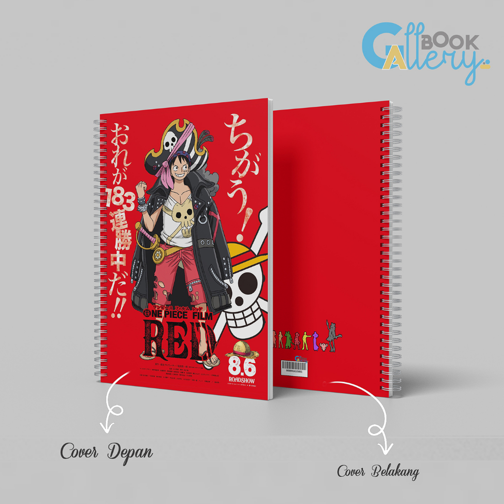 [SP] Buku Tulis / Buku Catatan / Note book Anime One Piece, FILM RED SPECIAL Jilid Ring Spiral Dengan isi Book Paper Garis/Polos 50 Lembar Free Poster dan Stiker Ukuran A5