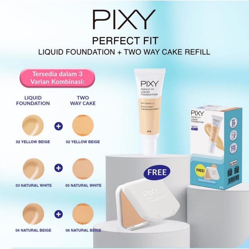 [SPECIAL PACKAGE- BUY 1 GET 1] PIXY PERFECT FIT LIQUID FOUNDATION FREE PIXY PERFECT FIT TWO WAY CAKE REFILL