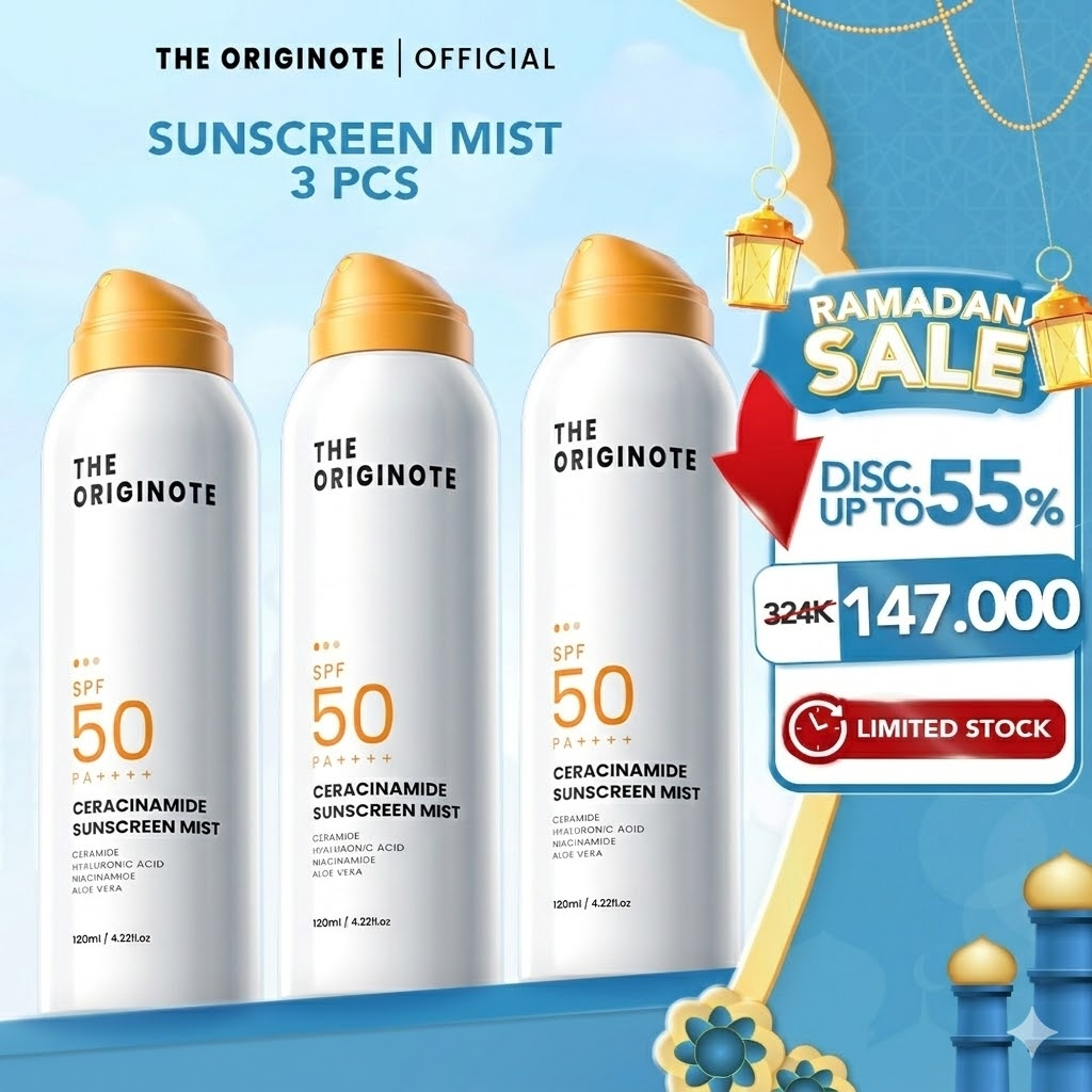 [SPECIAL PRICE] The Originote Ceracinamide Sunscreen Mist SPF 50 PA++++ - UV - Melembabkan Wajah No Whitecast Protector Sunscreen Spray Face Sun Mist Sun Shield Sunscreen Sunblock Melindungi Skin Barrier Wajah Melindungi Kulit dari Sinar Matahari