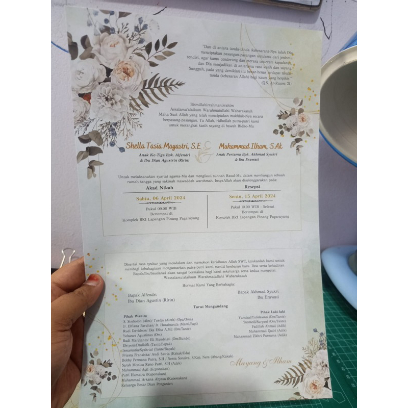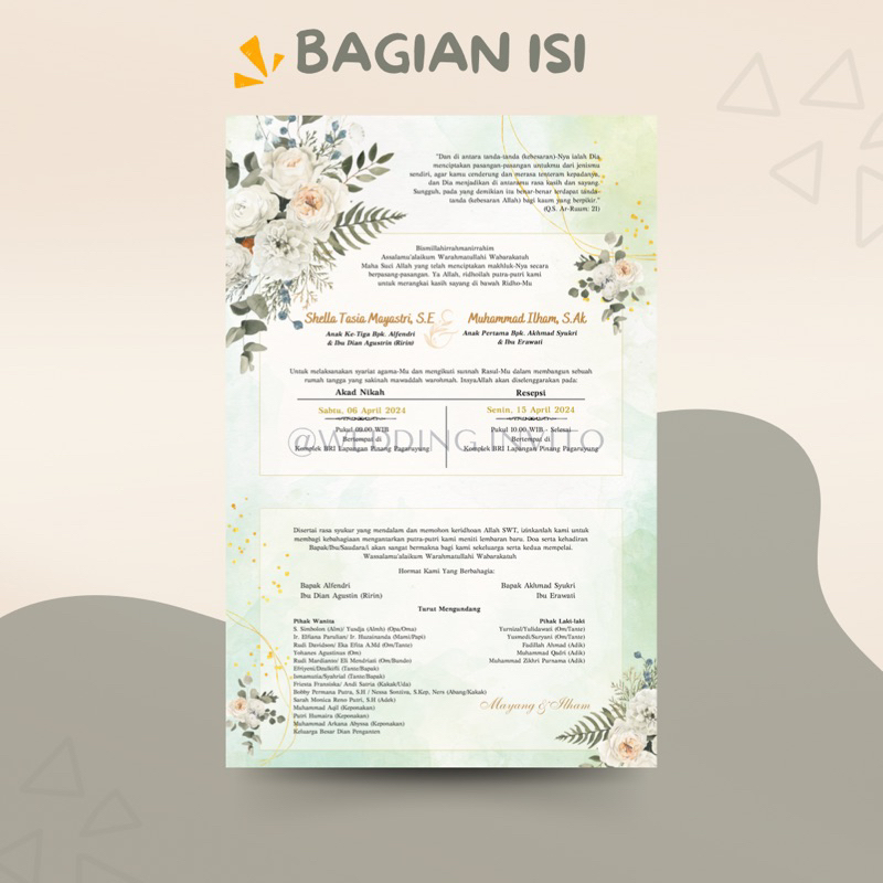 [Sage] Cetak Undangan Pernikahan Hijau Pastel Softcover Unik Etnik Semi-Amplop Separasi Custom Kertas/Paper Wedding Invitation Padang Maimbau Baralek