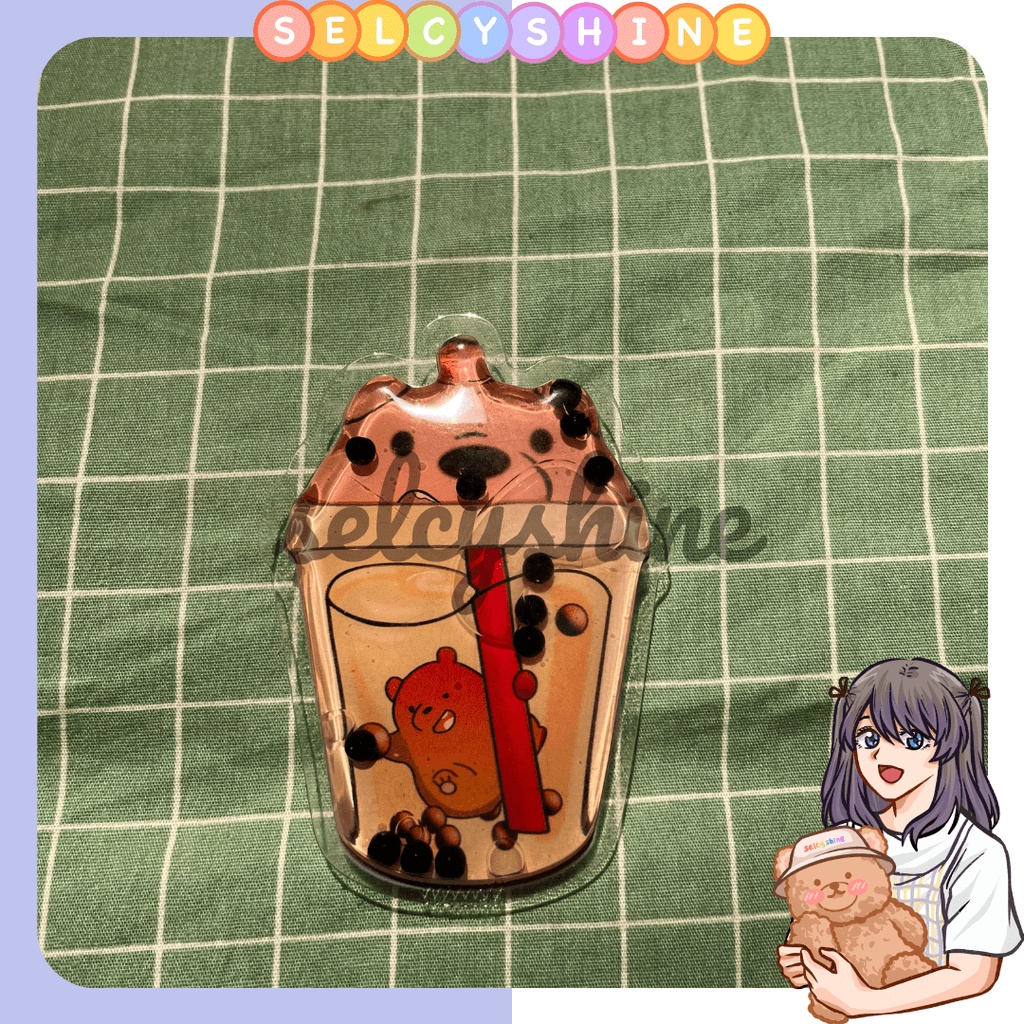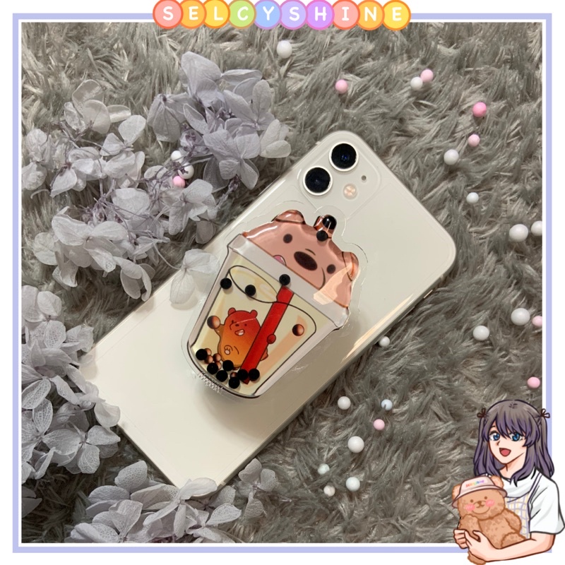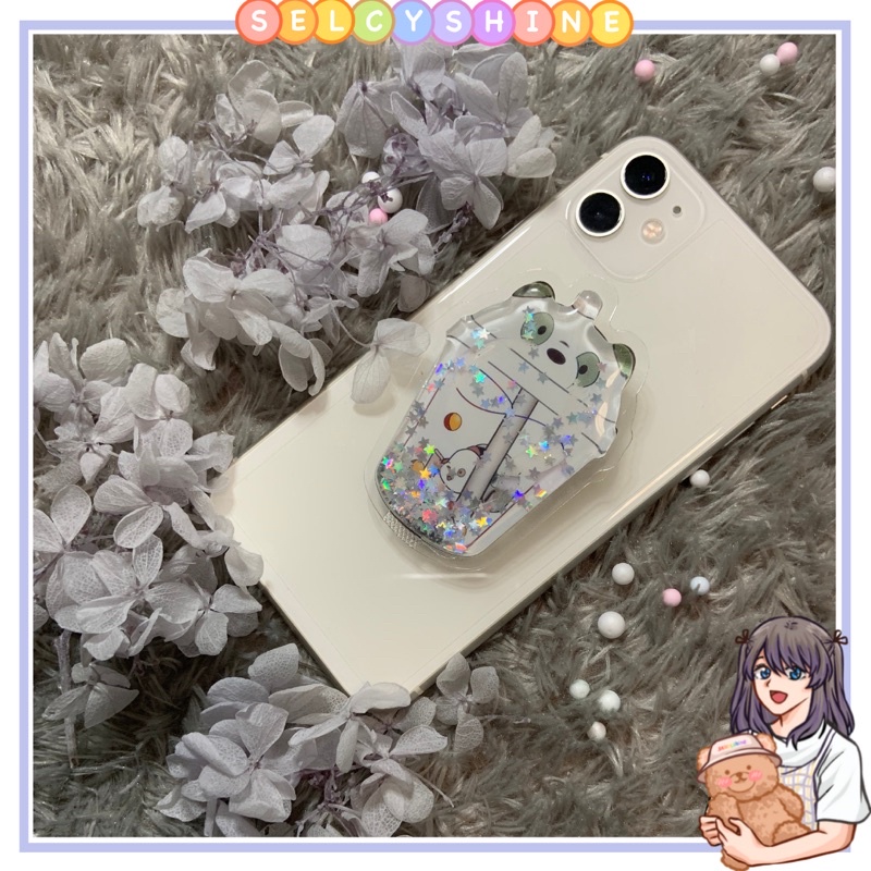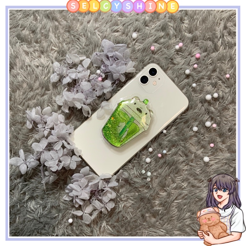 [Selcyshine] Pop Socket Animation - Pop Socket Karakter Glitter Liquid - Pop socket Bubble Tea Boba -Holder Phone