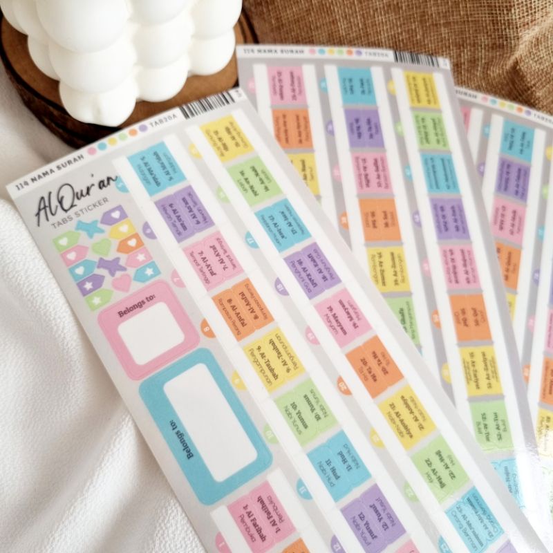 [Sticker Party] Stiker Pembatas Al Quran 114 Nama Surat dan Artinya Warna Pelangi Pastel Ukuran Kecil Tab Index File Map Penanda Buku Jurnal Al Qur'an Kode TAB20 TAB20A