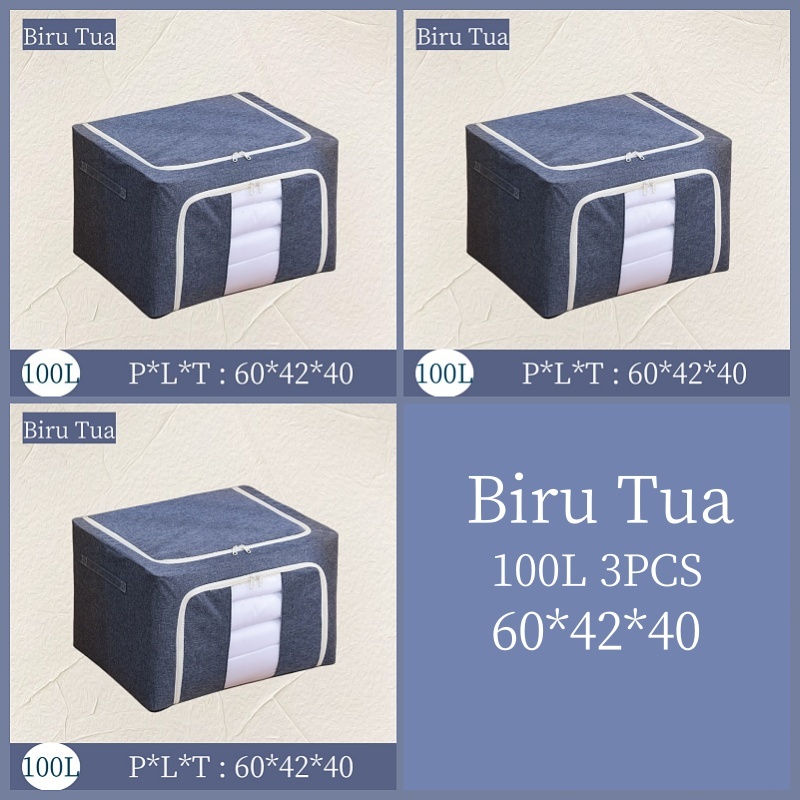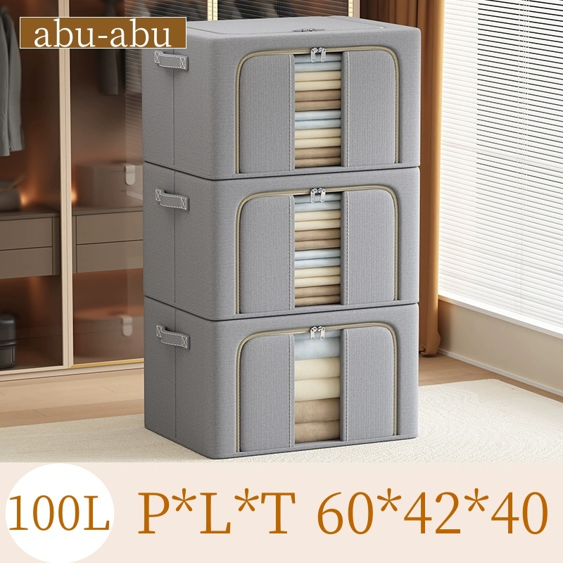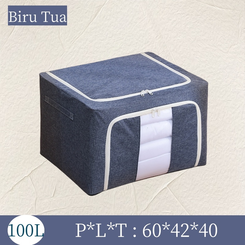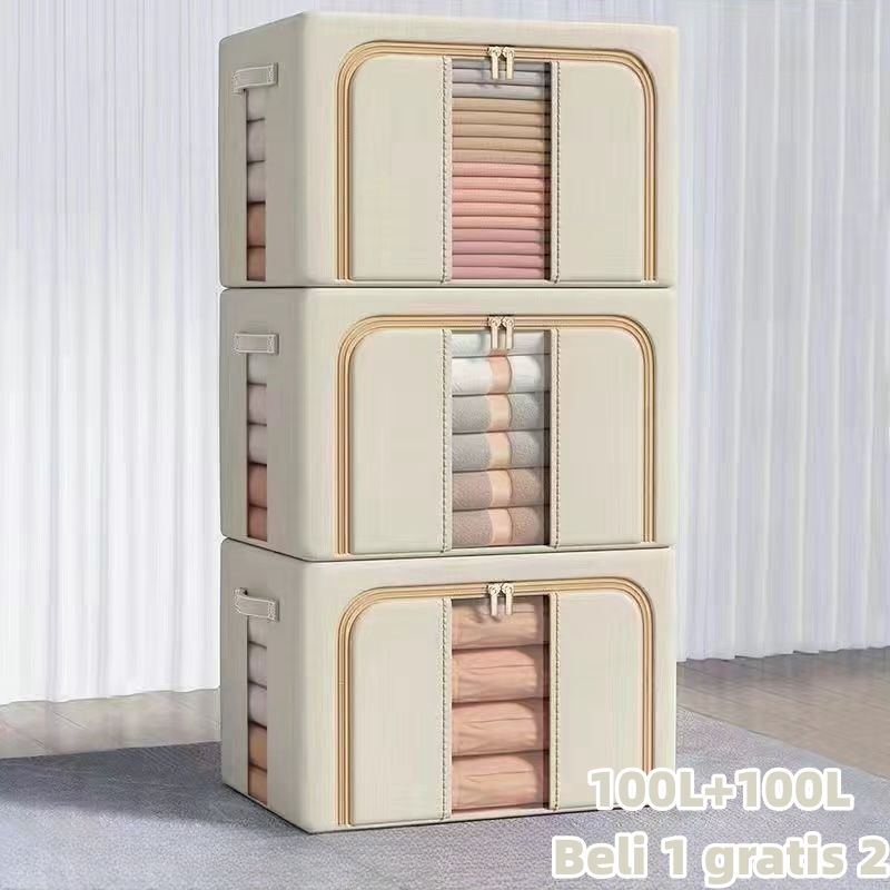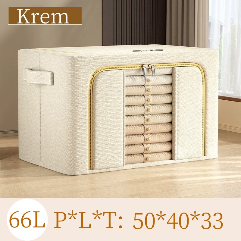 [Stok Lokal] lipat Storage Box serbaguna tempat penyimpanan baju kotak penyimpanan mainan tahan air dan tahan lembab box frame baja ritsleting lapis ganda besar