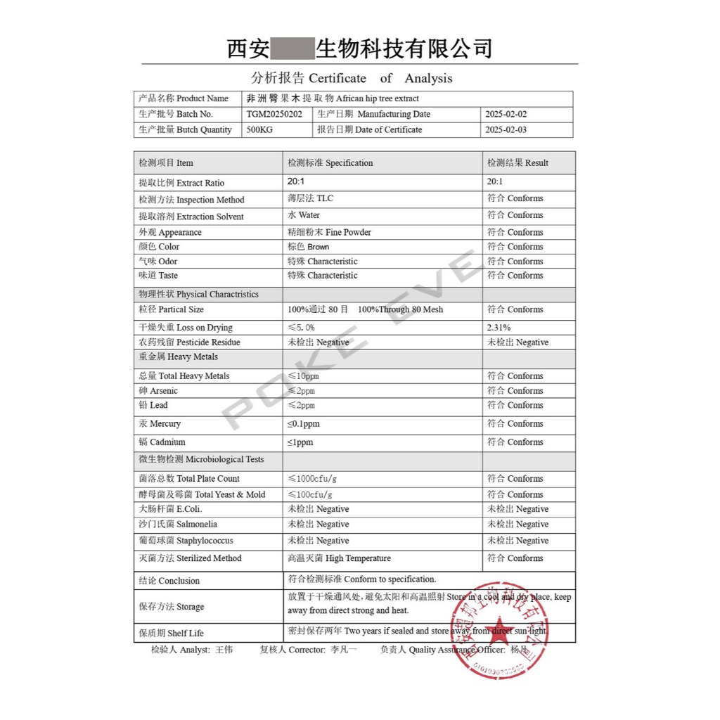 "Suplement BPH Prostat" Pygeum Bark Affricanum Extract 20:1 Powder 10 gr Water Soluble Food Grade