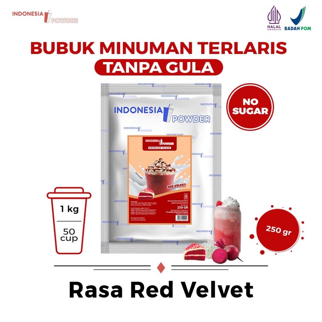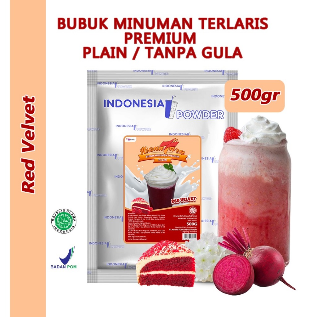 Bubuk Minuman Tanpa Gula Rasa Red Velvet 500 Gram Halal BPOM IPP Premium Plain Omura Powder