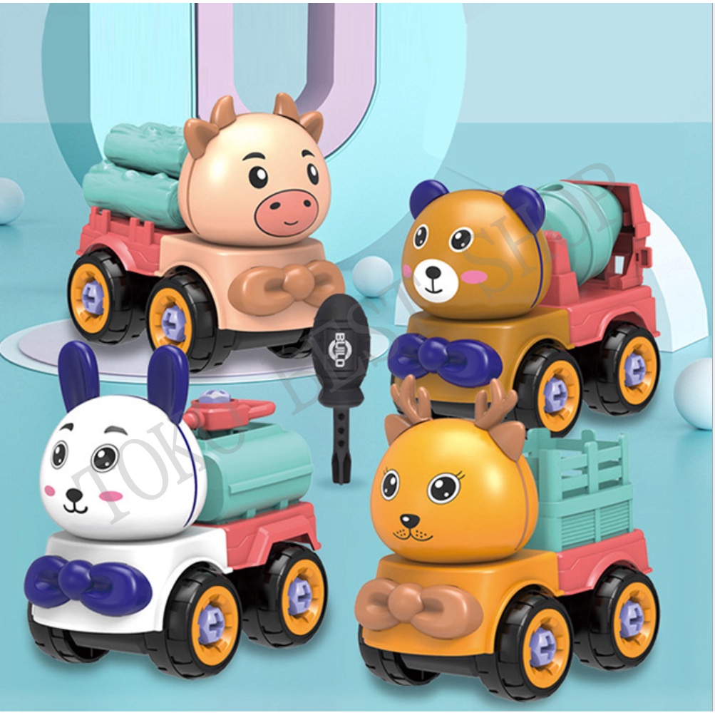 [TOKO BEST SHOP]Mainan Mobil Mobilan Karakter Bongkar Pasang DIY Edukasi Laki Laki Perempuan Assembly Toy/Mainan anak/