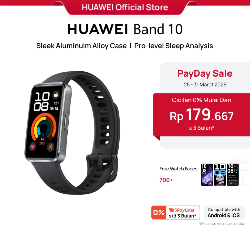 HUAWEI Band 10 Smartband | Sleek Aluminum Alloy Case | Pro-Level Sleep Analysis | Emotional Wellbeing Assistant
