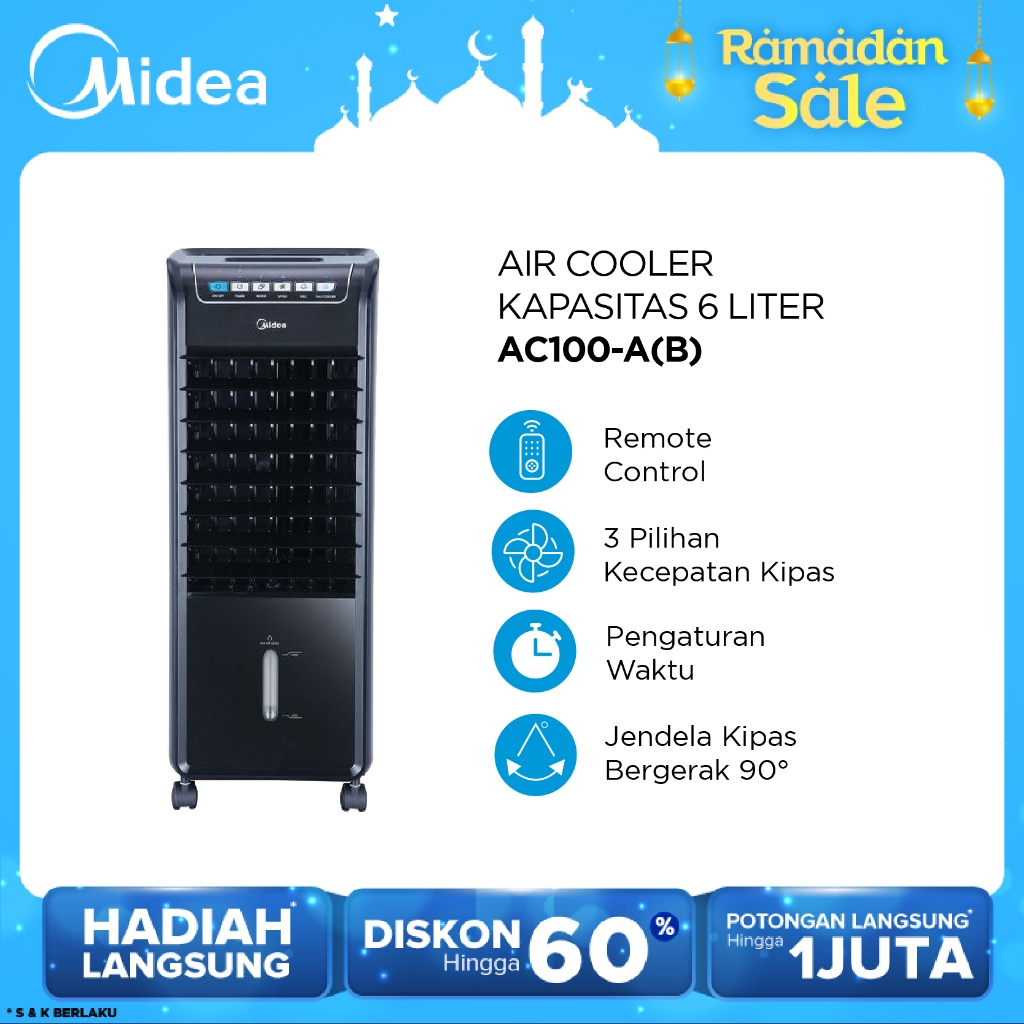 Midea Air Cooler 6.0 Liter AC100-A(B) - Remote Control - Timer 7 jam