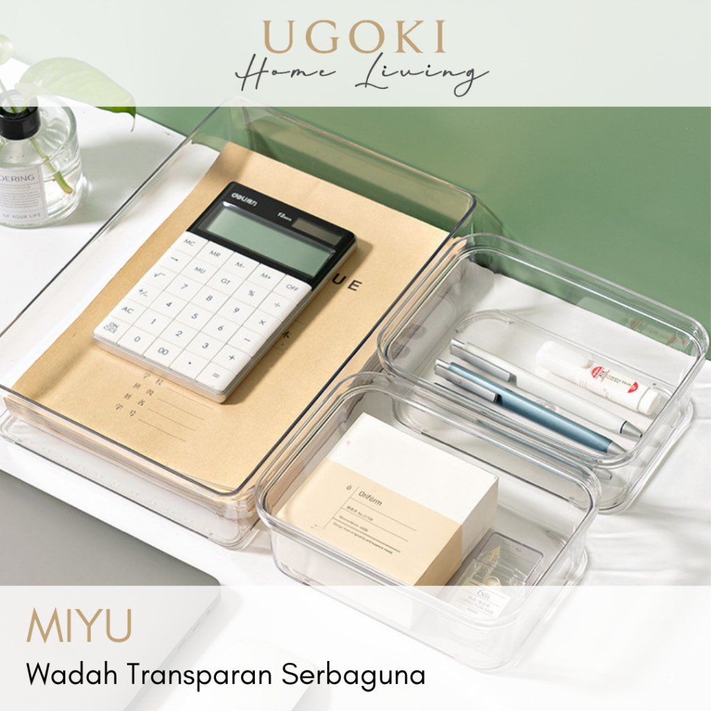 |UGOKI| MIYU Wadah Lemari Pen Pensil Estetis Organizer Sekat Alat Tulis Multifungsi Penyimpanan Alat Dapur Bening Wadah Alat Kantor Perlengkapan Organiser Laci Sendok Garpu Minimalis
