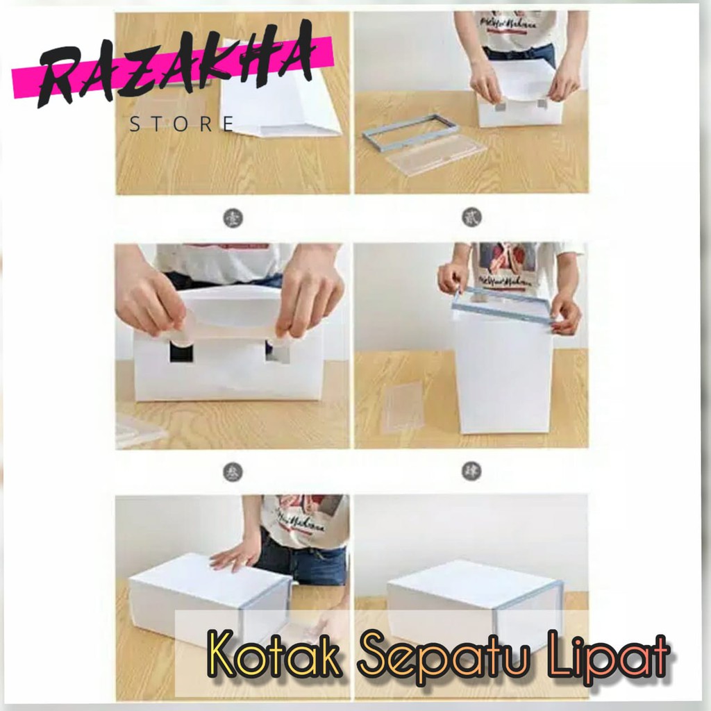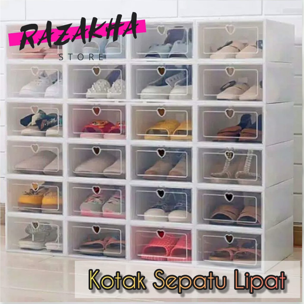 PREMIUM Kotak Sepatu Lipat Sepatu Susun / Rak Sepatu Kotak Flip Transparan