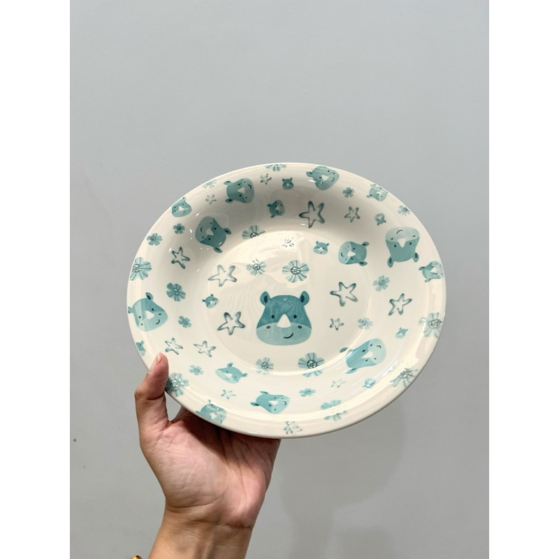 [ White Line ] Piring Makan Set Keramik LION n RHINO White Line / Piring Karakter 9,25" / Piring Cantik Set isi 6 Pcs!