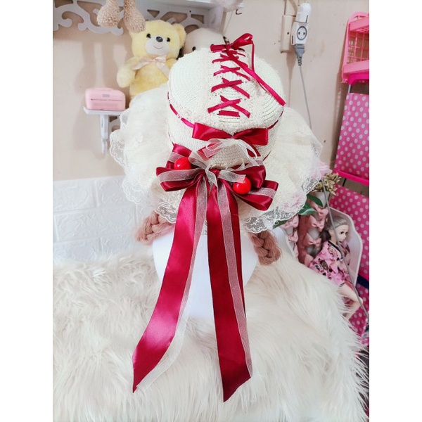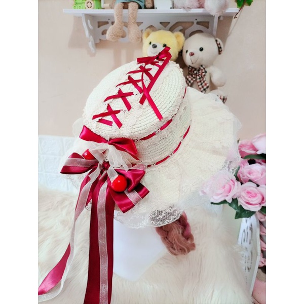 [ YUKA SHOPPU ] PREMIUM Topi hat boater cottage cottagecore Lolita Kawaii renda lace unique Vintage japanese Korea Style