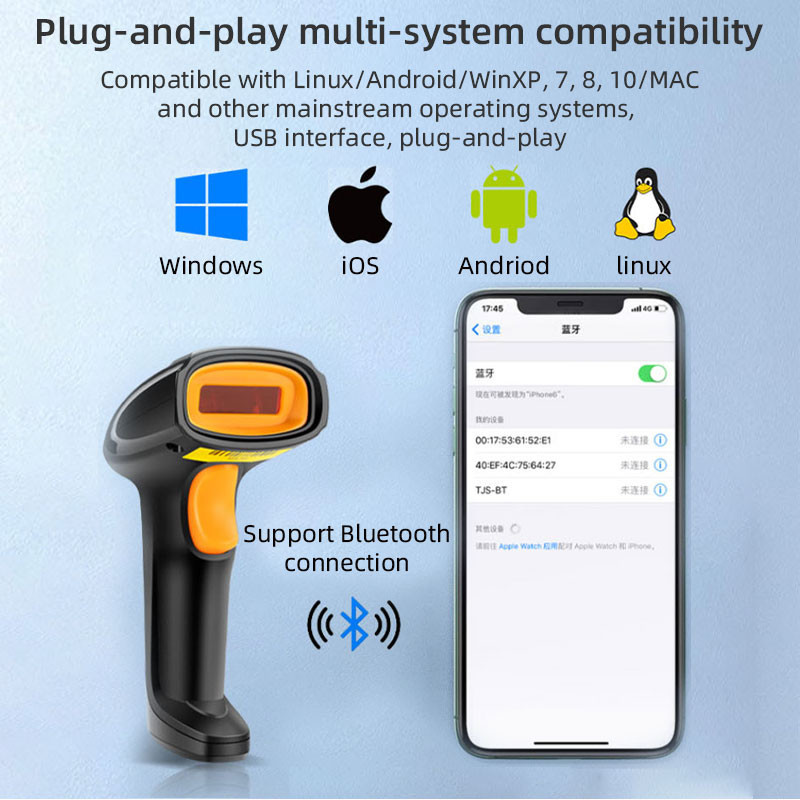 [cod] Scanner Barcode 1D 2D Terbaru AutoScan Dengan Kabel Wireless Untuk Kasir, Scan Produk Resi Marketplace