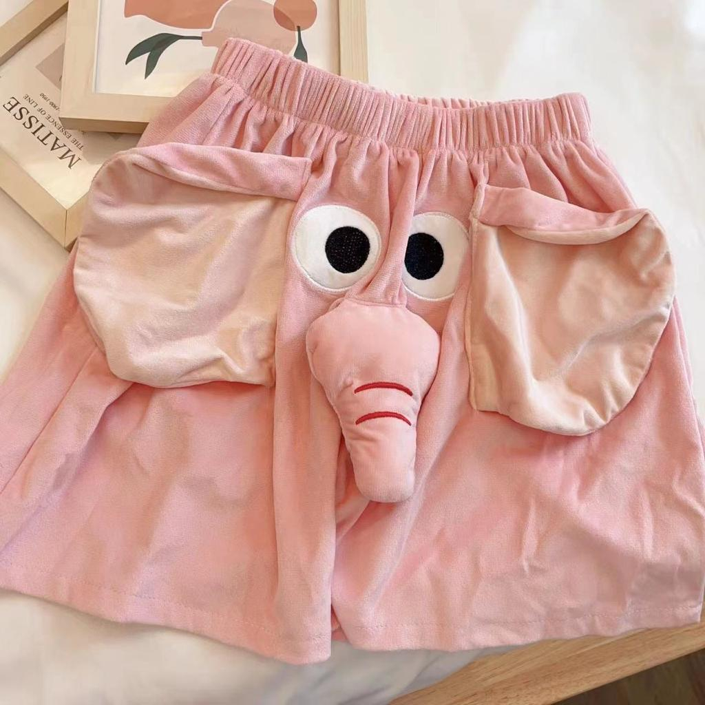 [littlecrab] Celana Pendek Motif Gajah Lucu Belalai Bunyi Dumbo Unik Couple Piyama Tidur Celana Gajah Short Pants Daily Pink Biru Unisex