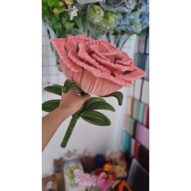 [pilo.florist] Giant Rose Bunga Kawat Bulu (PO) (FREE PACKING KARDUS DAN REQUEST UCAPAN)