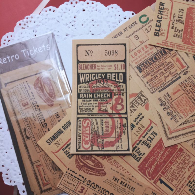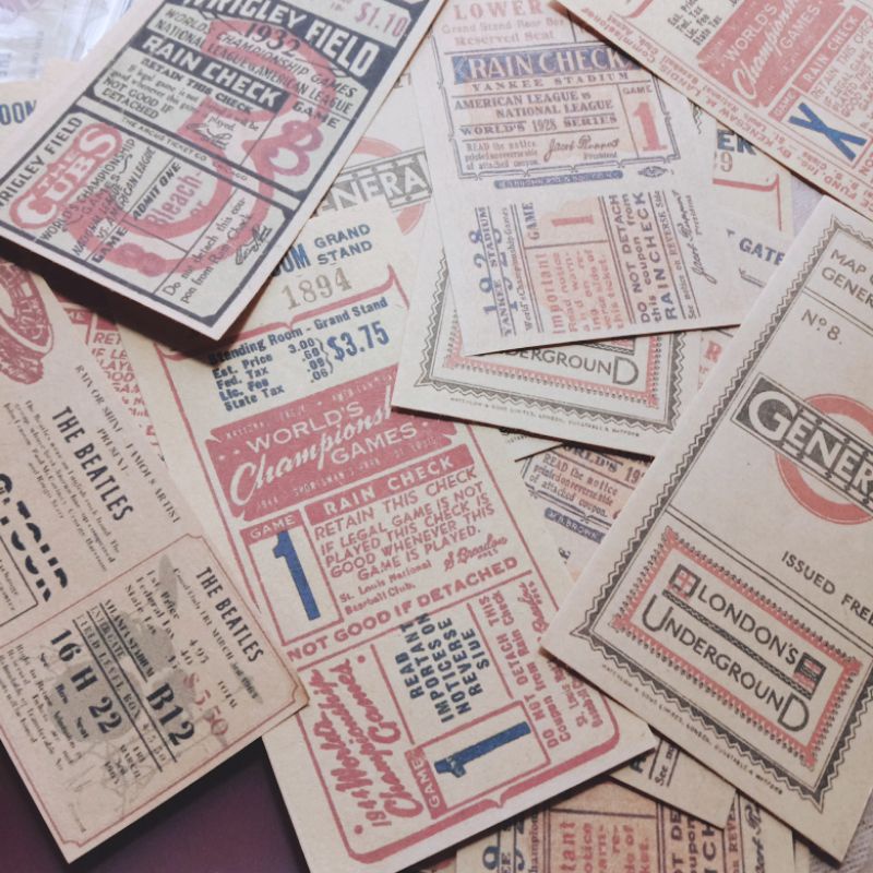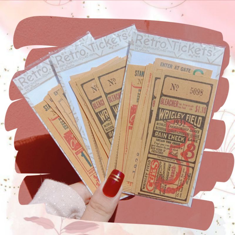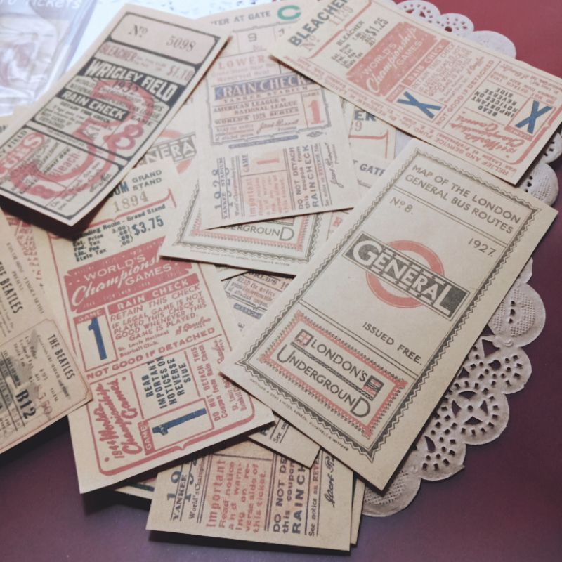 <retro ticket> bujo kit, journal kit, bahan jurnal, scrapbook, retro tickets, retro tiket, vintage, tiket model retro, deco paper, material deco, journal deco, scrapbook deco, journal paper, journal supply, journal vintage, vintage paper, kertas dekorasi
