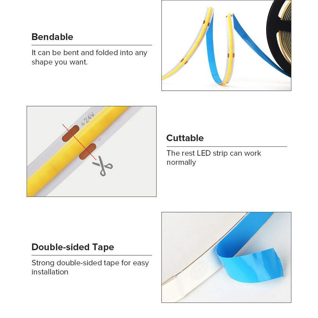 [tTE] Led Strip COB DC 12volt / 5 METER 12 VOLT / 1060 LED / DOUBLE TIPE / WHITE / WARMWHITE / NATURAL