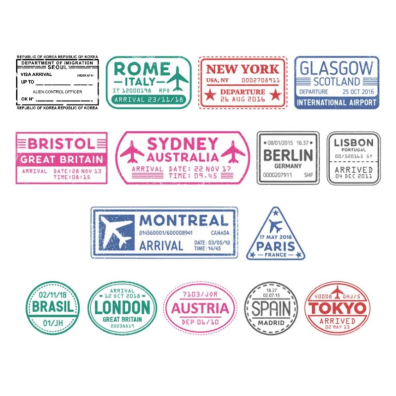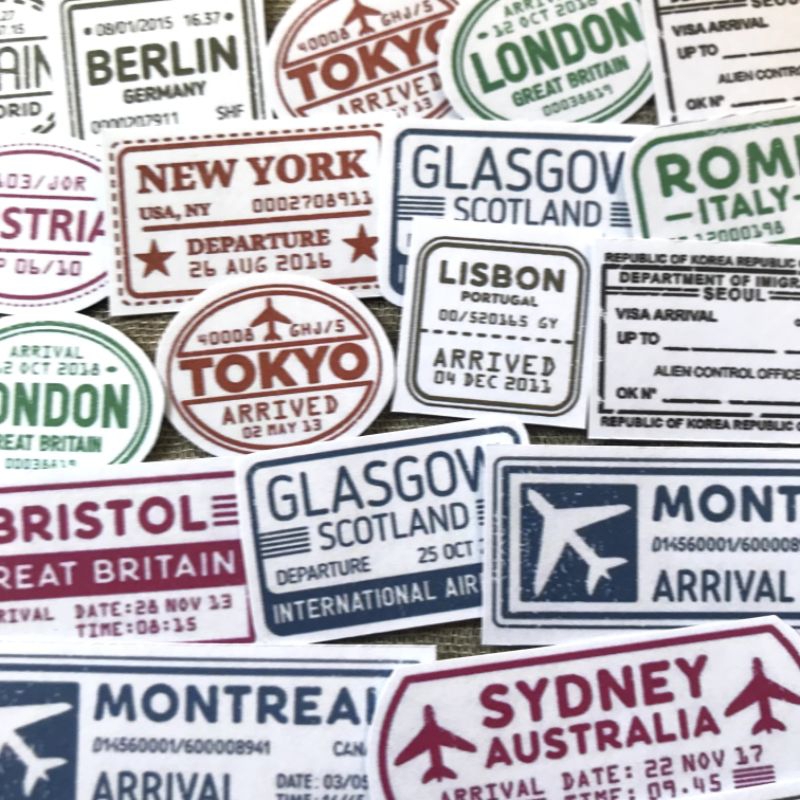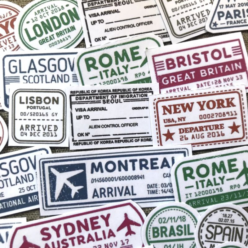 15pcs visa stamp sticker deco, sticker stempel, stamp, stamp sticker, visa stamp, bahan jurnal, journaling kit, scrapbook,jurnaling