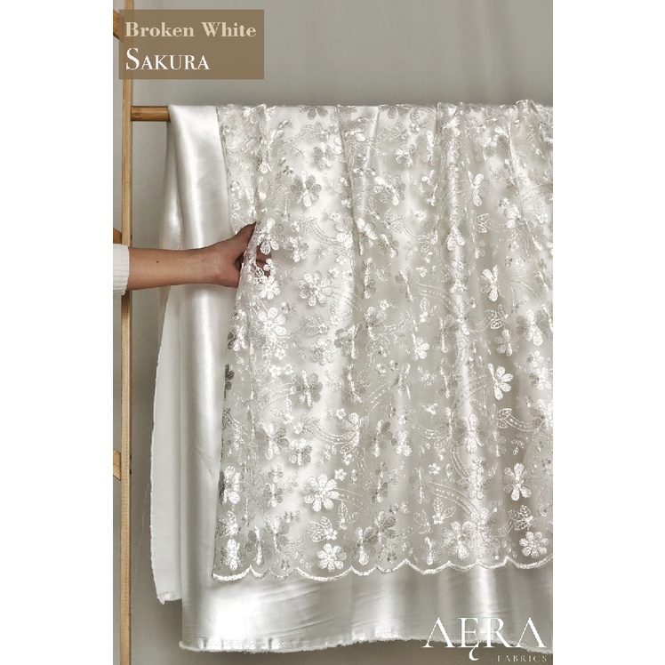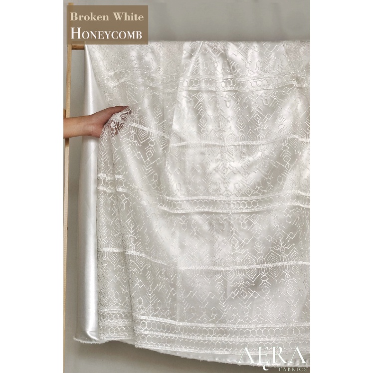 0,5 meter Kain Bahan Brokat Kebaya BROKEN WHITE