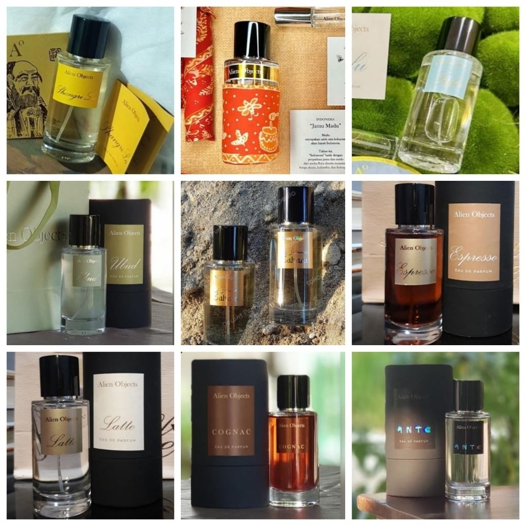 0,5ml | ALIEN OBJECTS | Bougainvillea Sahara Mecca Espresso Fufu Xoxo Ante Love Hugs Jamu Madu Cendana Ubud Shangri La Cruise Pandan Porto Chianti M8 Cognac | 0,5 ml dlm botol oles, 1ml dlm botol spray
