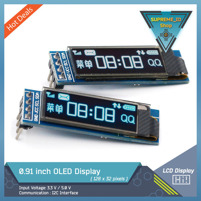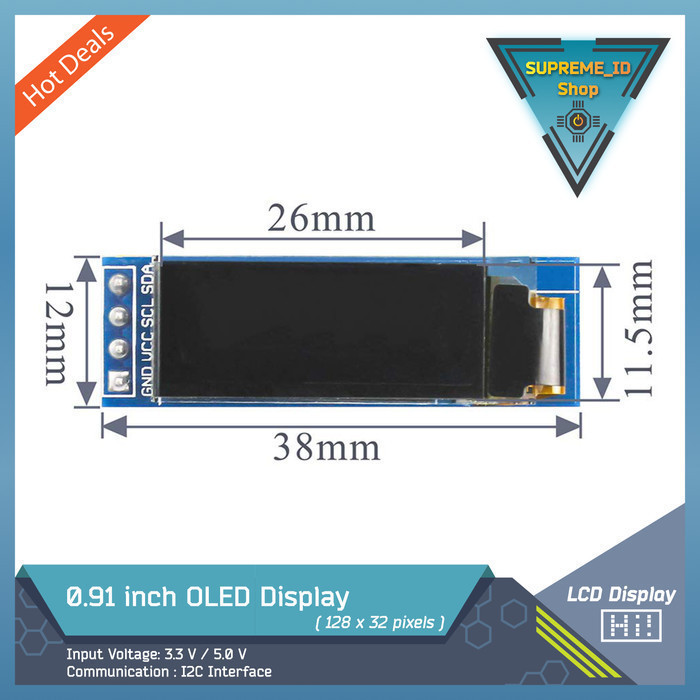 0.91 inch 128x32 px pixels I2C IIC OLED LCD Screen Display | 3.3-5Vdc