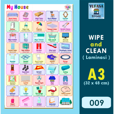 009 Poster mengenal benda rumah - Poster Edukasi Anak - Poster belajar anak - Poster wipe and clean - perlengkapan belajar anak - poster dinding murah - poster anak paud / TK - poster anak SD -