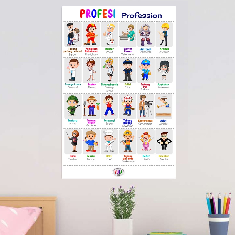 060 Poster mengenal profesi - Poster Edukasi Anak - Poster belajar anak - Poster wipe and clean - perlengkapan belajar anak - poster dinding murah - poster anak paud / TK - poster anak SD