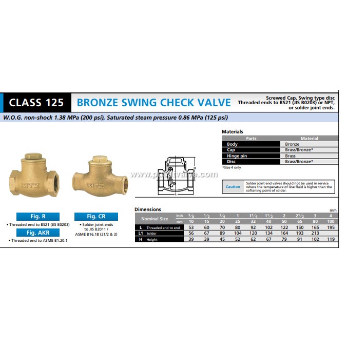 1 1/2" CHECK VALVE KITZ KUNINGAN