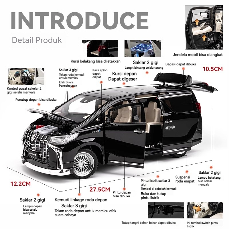 1:18 Model mobil Toyota Alphard Koleksi model mobil untuk dipamerkan Mobil mainan Pintu bisa dibuka
