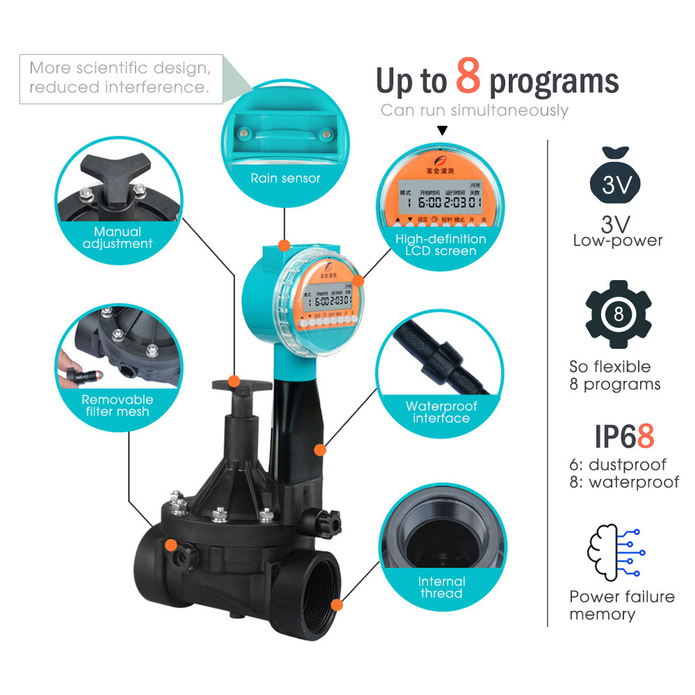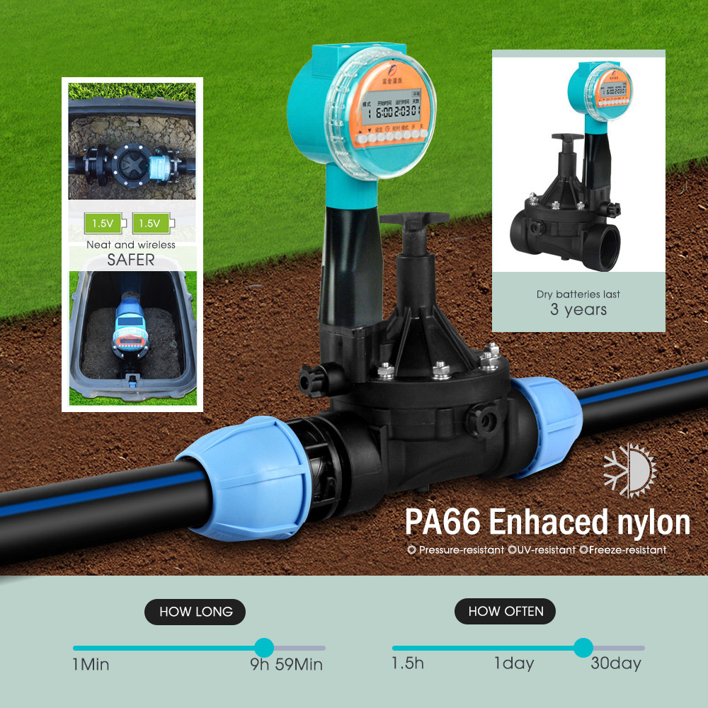 1/2"1" 3V Garden Smart Solenoid Valve Timers Waterproof Programmable Irrigation Rain Sense Solar