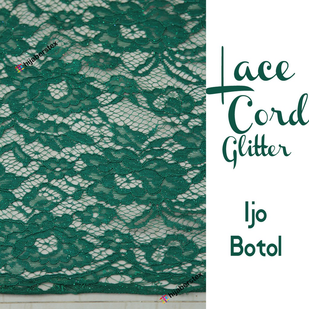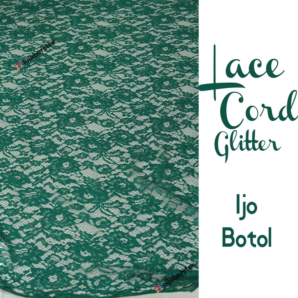 1/2 Meter Kain BROKAT LACE CORD GLITTER Ijo Botol (ecer warna)