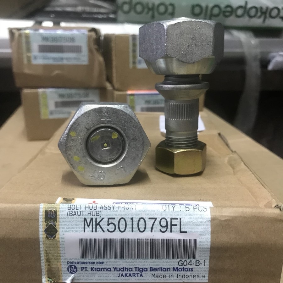 1 Biji Baut Roda Depan / Front Hub Bolt & Nut Colt Diesel Canter 125PS / 136PS HDX merk Mitsubishi ORI KTB Asli (Kiri / Kanan)