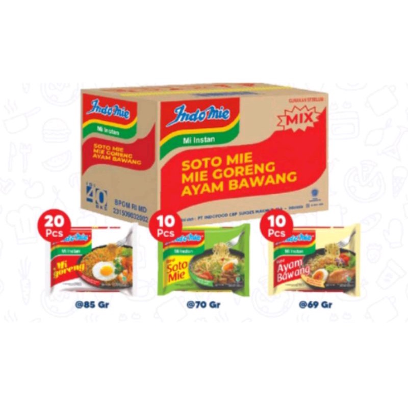 1 DUS - Indomie Mie Instan Indomi Karton Mix - Mi Goreng, Ayam Bawang, Rendang, Ayam Geprek, Kocok Bandung, Empal Gentong, Cabe Ijo, Pop, Kari, Kaldu Special Isi 40 Bungkus [Gratis Ongkir]