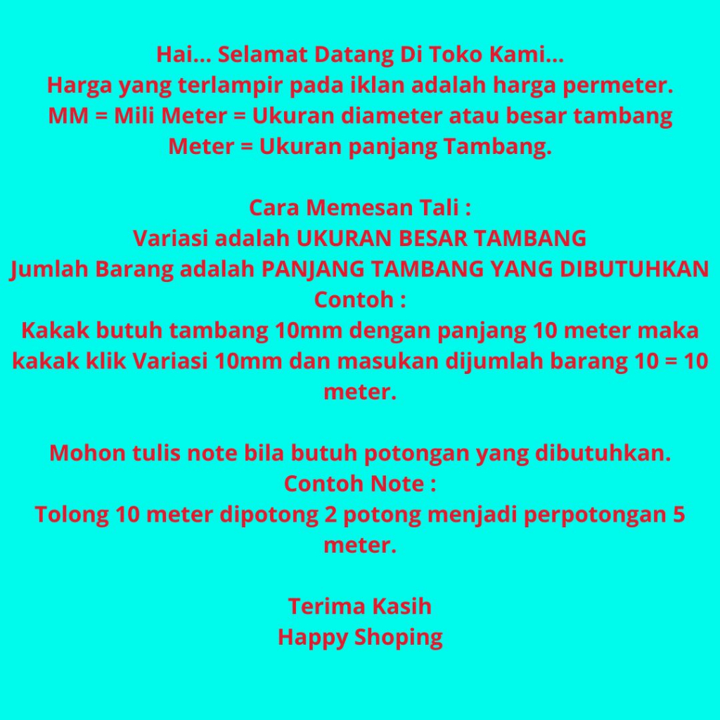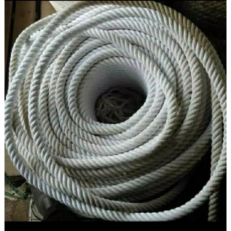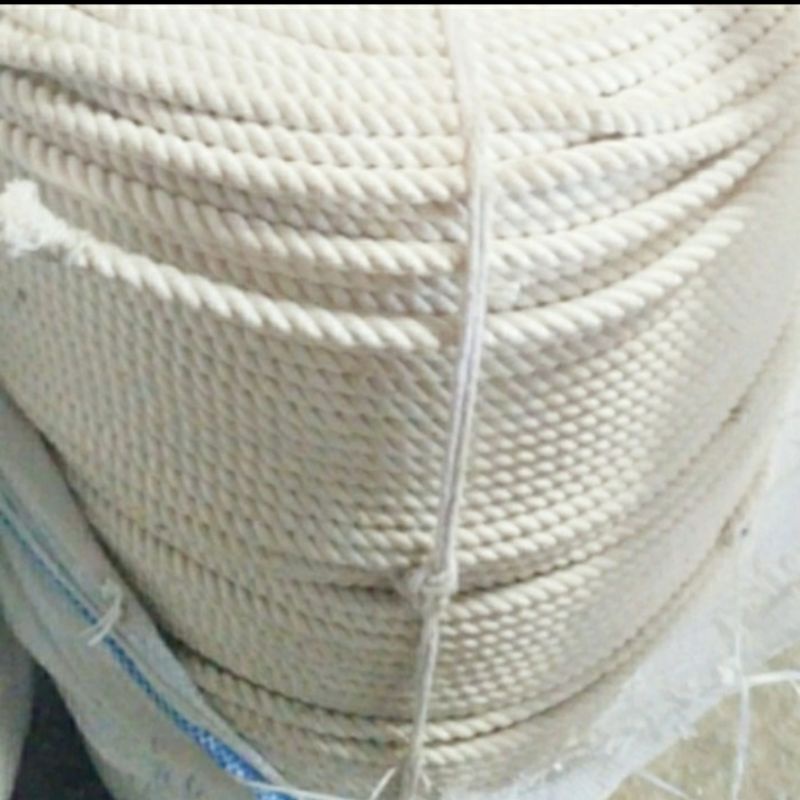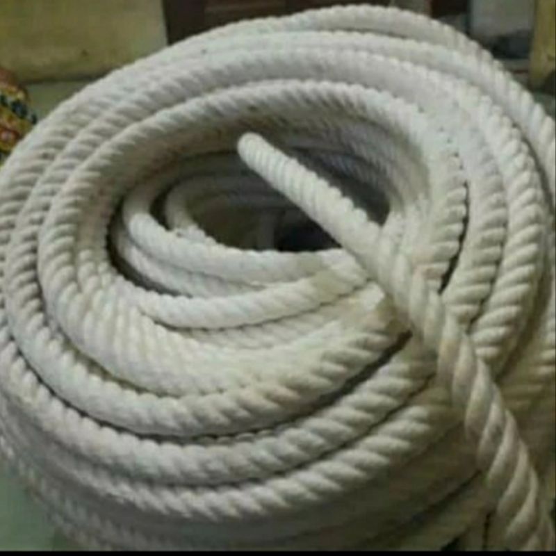 1 Meter Tali Tambang Ukuran 6mm 8mm 10mm 12mm Kuralon Tali Kain Katun Putih Ikat Kuat