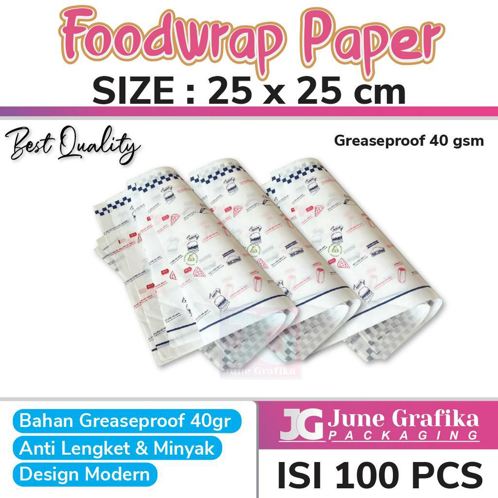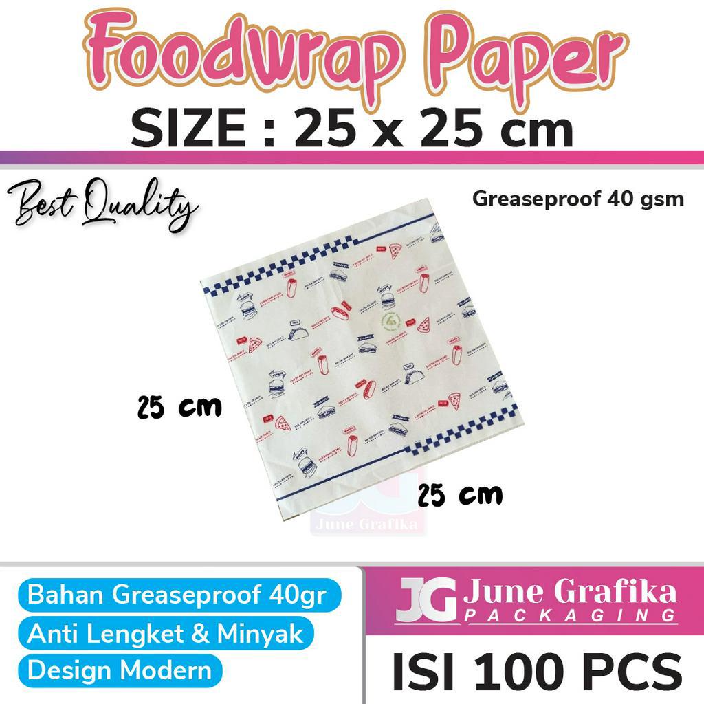 1 PAK 100 PCS Kertas Kebab / Kertas Burger / Kertas Roti ukuran 25x25 cm / Kertas Wrapping Kebab