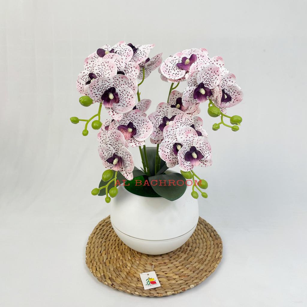 1 PAKET RANGKAIAN BUNGA ANGGREK LATEX 4 CABANG RB6057 BUNGA ANGGREK PLASTIK DEKORASI RUMAH BUNGA PLASTIK