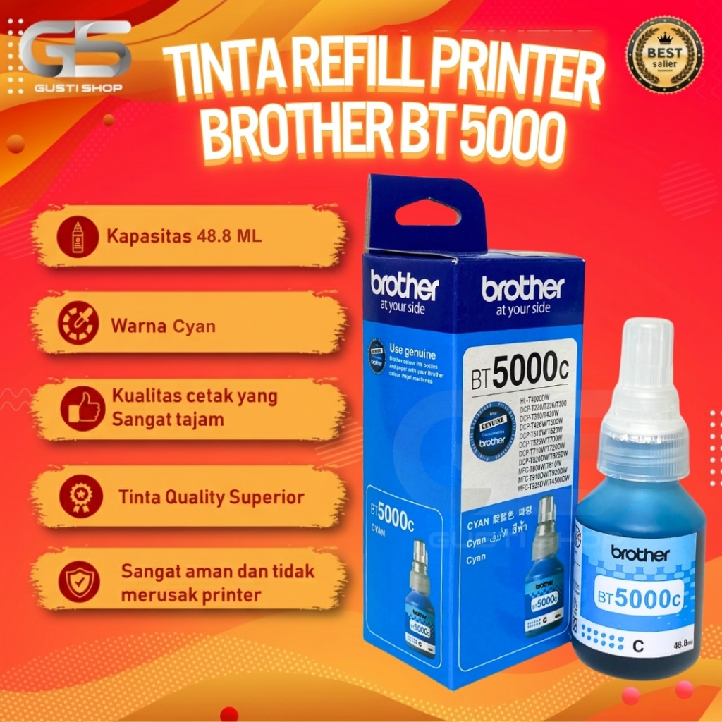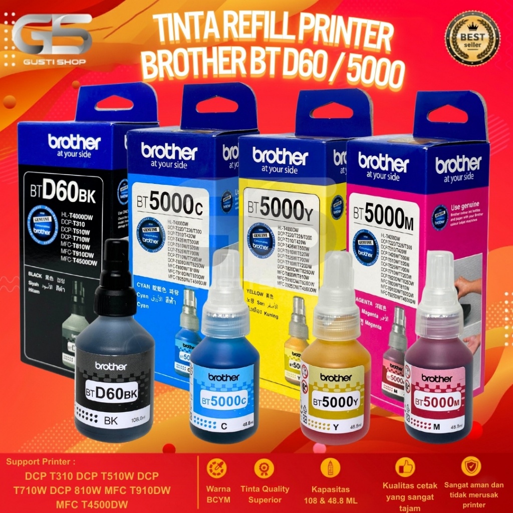 1 Paket 4 Pcs Tinta Brother BTD60BK & BT5000 Untuk Printer DCP T310 T510W T710W T810W Cetak Tajam Warna Stabil Hemat Maksimal