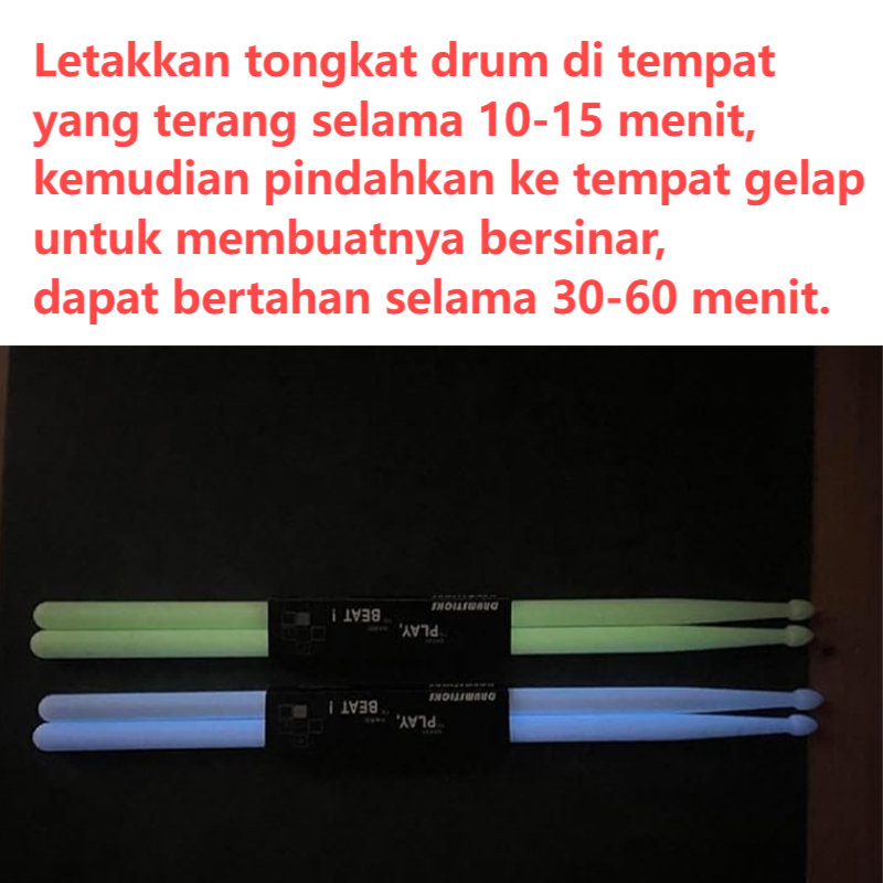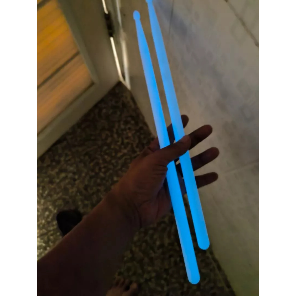 1 Pasang Stik Drum Fluoresensi Berwarna Nilon Plastik Stik Panjang 5A Luminous Drum Sticks Stick Pound Fit Workout Fluoresensi Ripstix Poundfit Stik Nylon