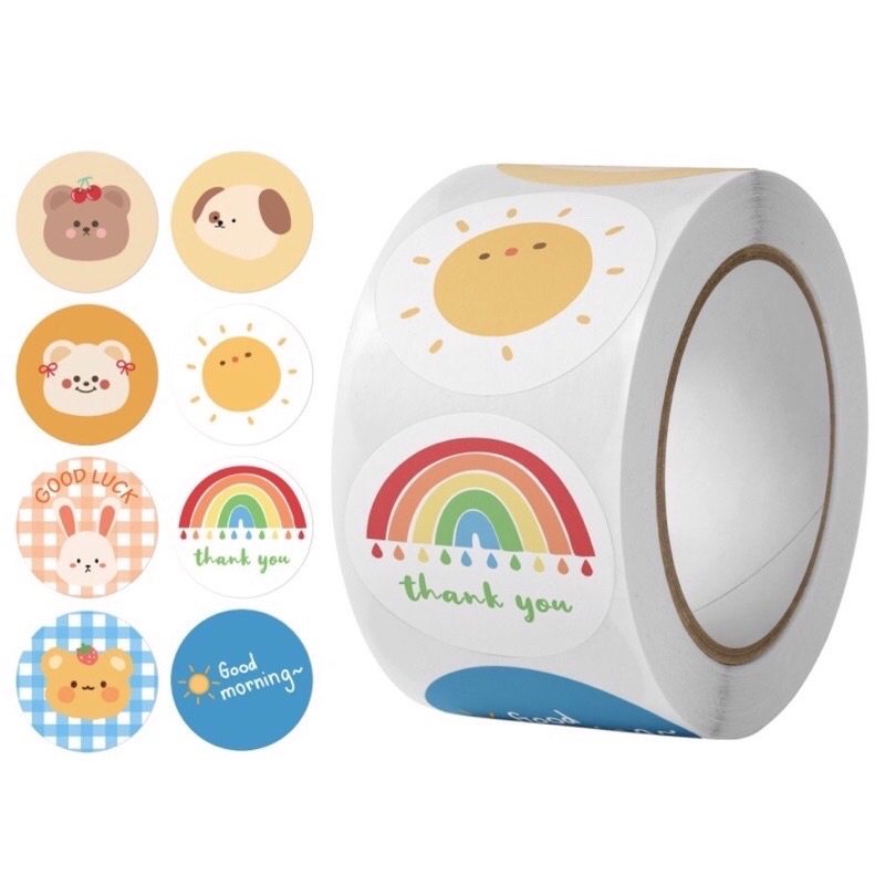 1 Roll 500pcs Sticker Bulat Aesthetic || Sticker Aesthetic Sticker Ins Korea Sticker Hiasan Sticker Lucu Kawai Imut Sticker Hias Photocard PC Planner Journal Jurnal Scrapbook Bujo Diary Gift Sticker Thankyou Label Sticker Murah