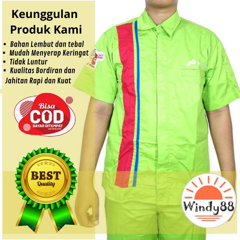 1 SET BAJU DAN CELANA SPBU OFFICE BOY SERAGAM PERTAMINA PASTI PRIMA WARNA HIJAU SETELAN POM BENSIN KEMEJA PRIA DAN WANITA OB LENGAN PENDEK TERBARU
