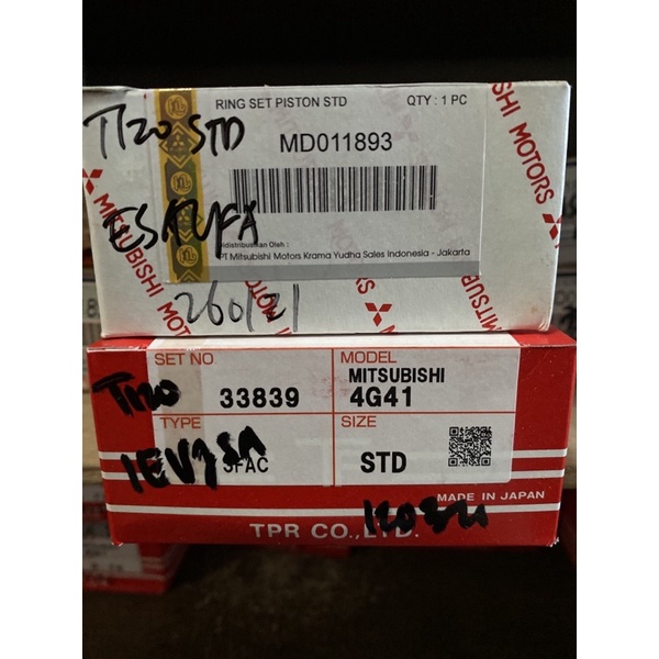 1 SET Per Seker / Per Seher / Cincin Torak / Piston Ring Colt T120 (4G41) Tahun 1970-1980 Merk TP Jepang Asli / ORI KTB
