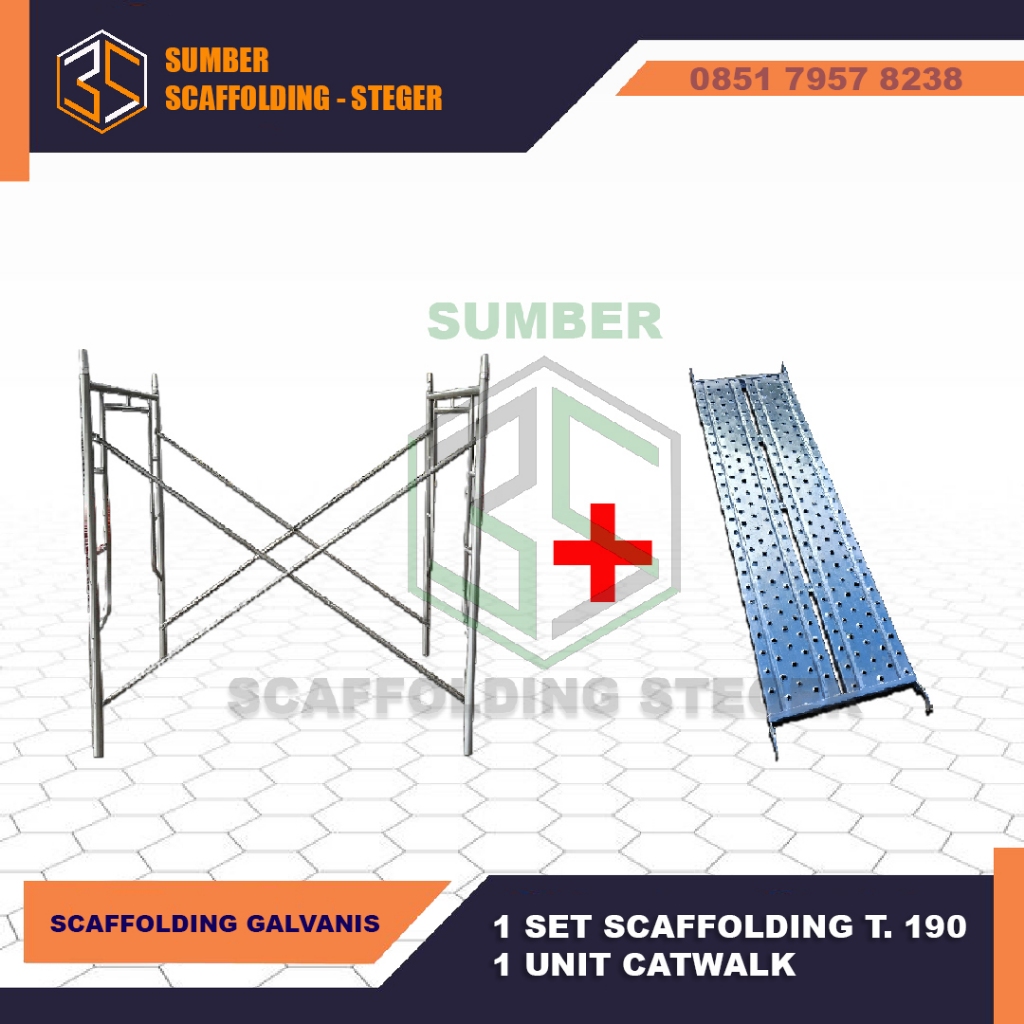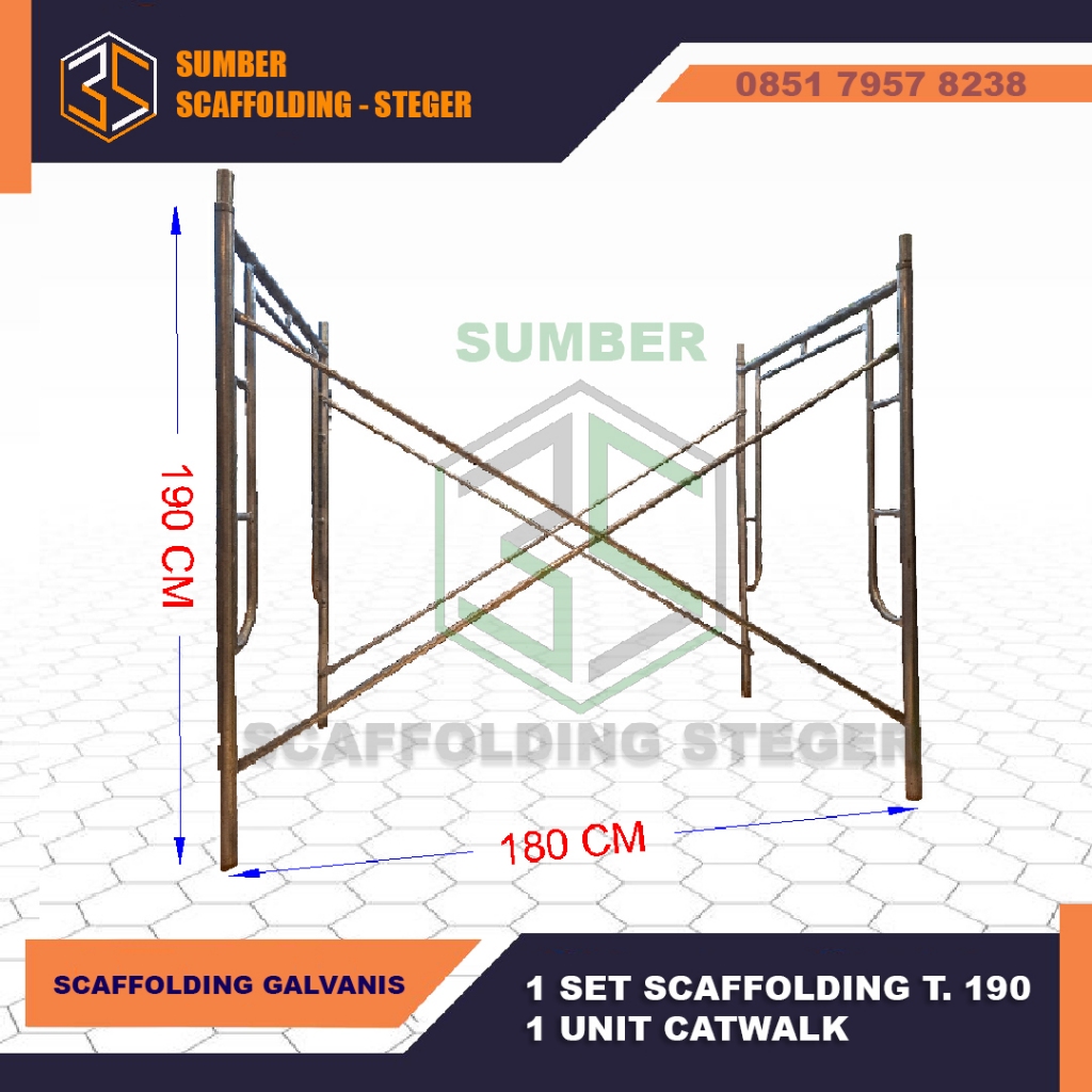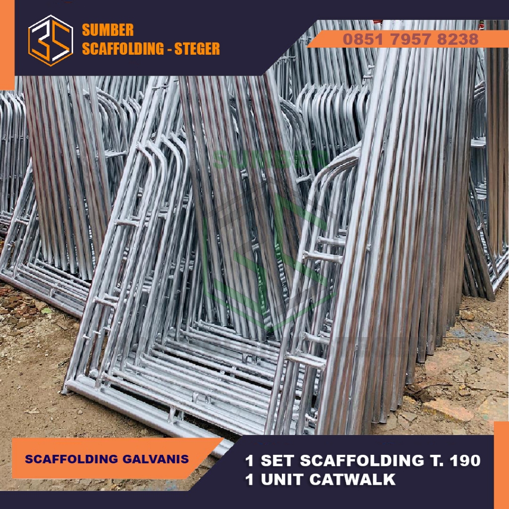 1 SET Scaffolding Main Frame 190 cm + 1 UNIT Catwalk Perancah Steger - Galvanis