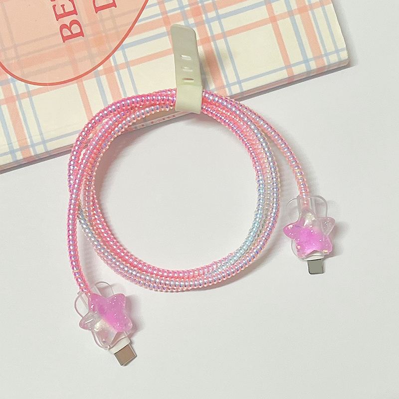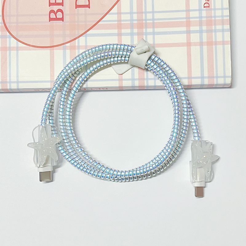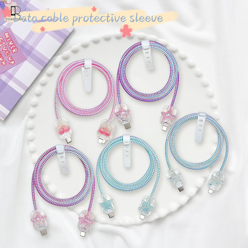 1 Set 4 item Pelindung Kabel Charger Iphone Lighting+Type-C Pelindung Kabel Data Kawat Kabel Data Handphone- Rose'3C