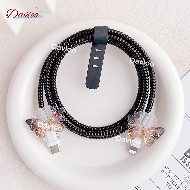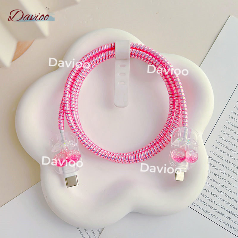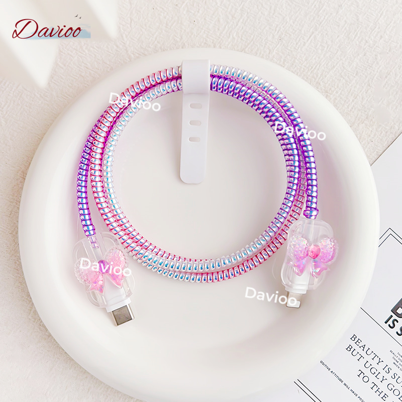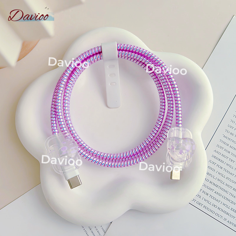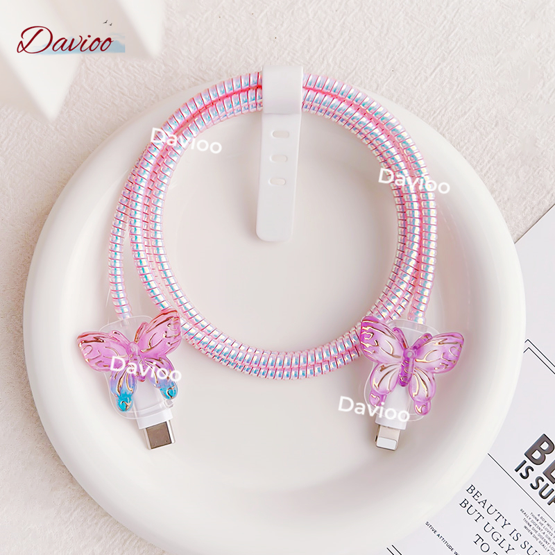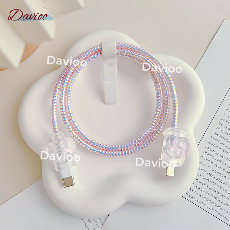 1 Set 4 item Pelindung Kabel Charger Iphone Lighting+Type-C Pelindung Kabel Data Kawat Kabel Data Handphone