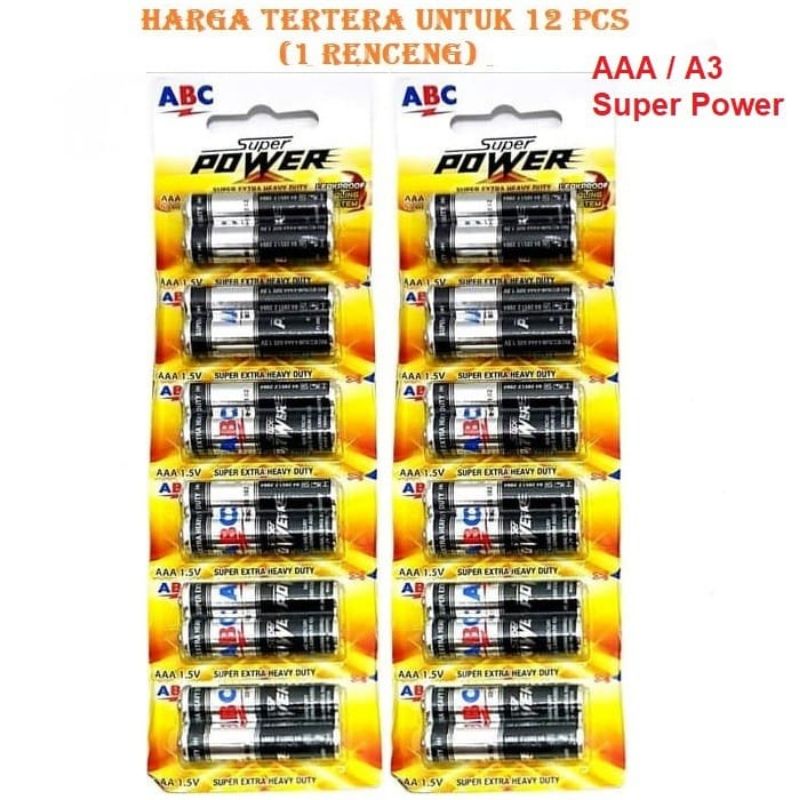 1 Set Baterai ABC Kecil Ukuran AAA /Baterei/ Battery Super Power R03/AAA ( Set)
