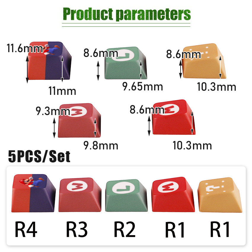 1 Set Isi 5 Keycaps Mario PBT Keyboard Caps / Keyboard Caps Komputer Dye-sub Super Mario Bros Set