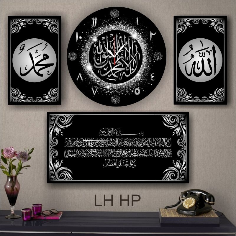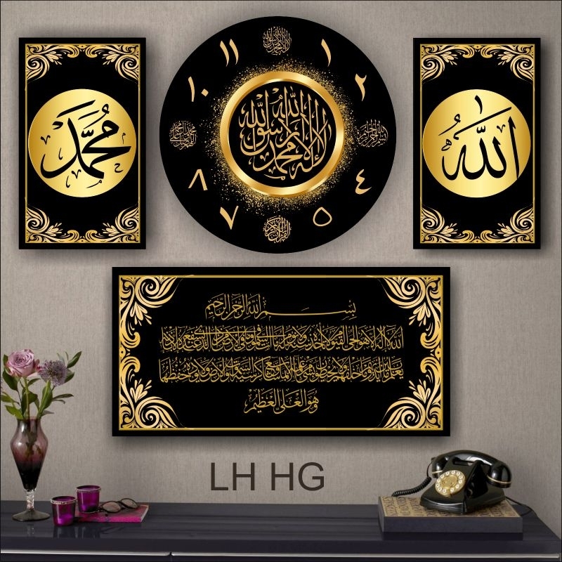 1 Set Jam Dinding Kaligrafi Terbaru Mewah, Jam Dinding Islami Allah Muhammad Ayat Kursi Kalimat tauhid